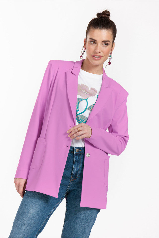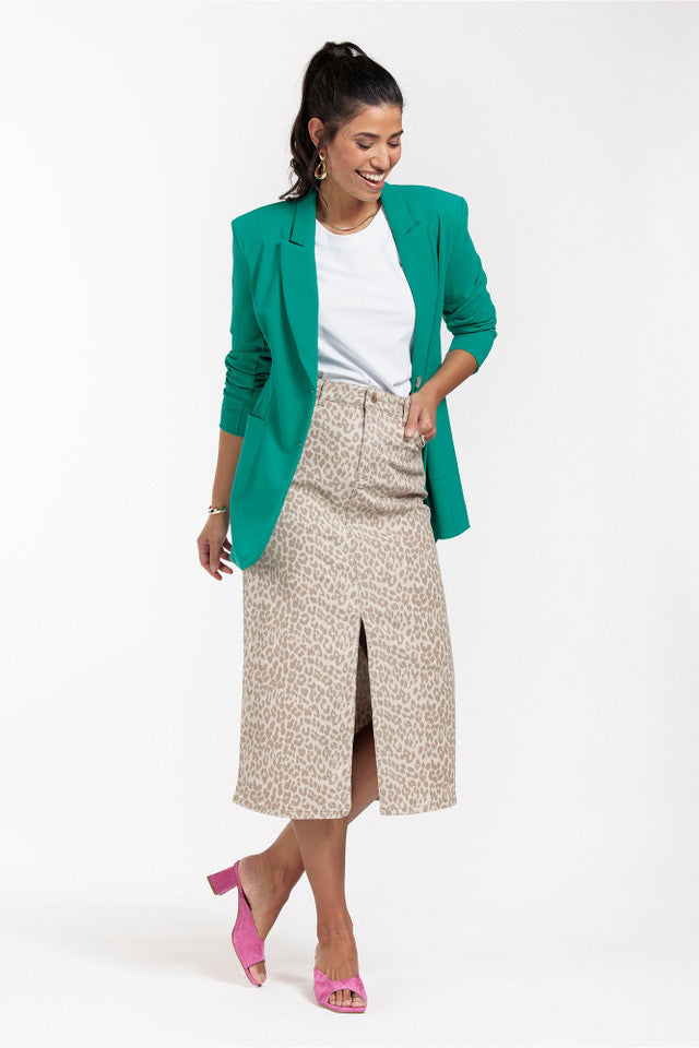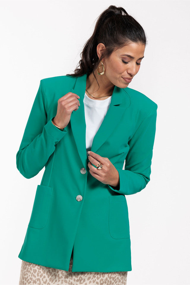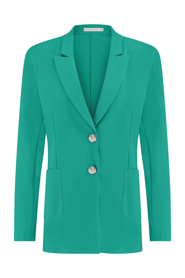 The Harlow bonded blazer from Studio Anneloes has a straight model with power shoulders. Looking for summer workwear? Complete your outfit by combining the Harlow blazer with matching trousers in Smaragd.